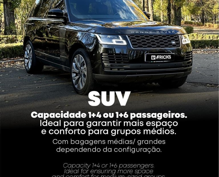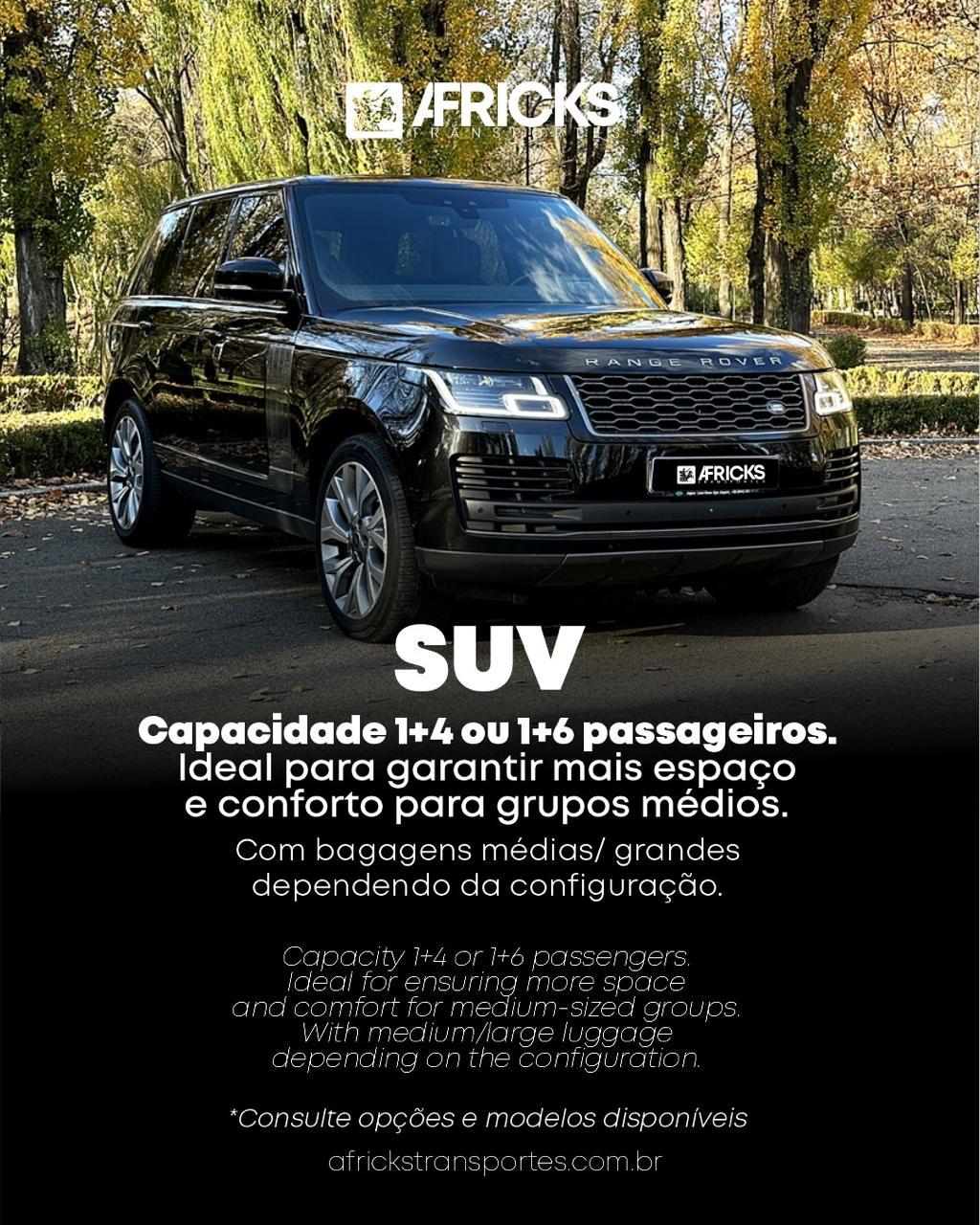 Serviço de SUV com conforto e segurança para viagens, passeios ou compromissos do dia a dia.