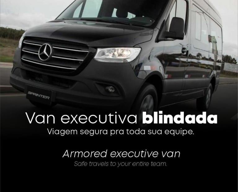 Transporte em van executiva blindada com discrição, conforto e máxima segurança.