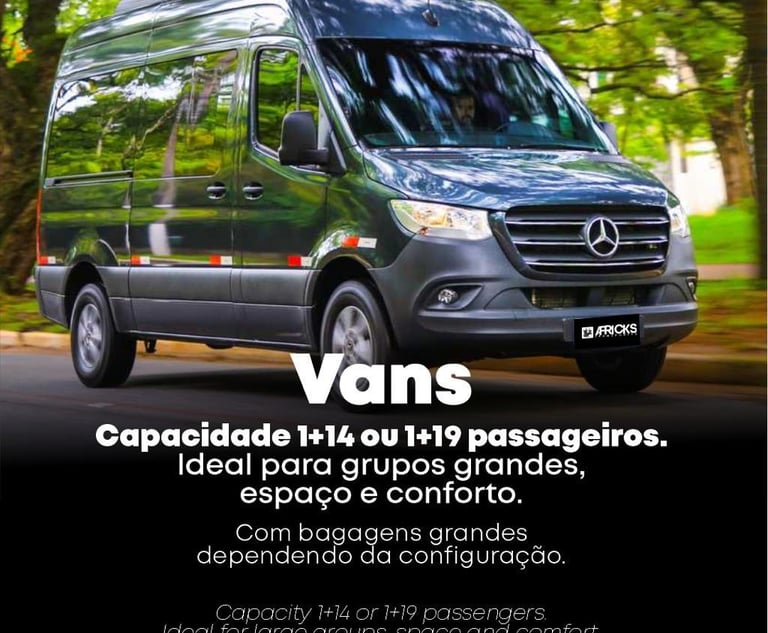 Transporte em van ideal para grupos, com conforto, segurança e pontualidade garantida.