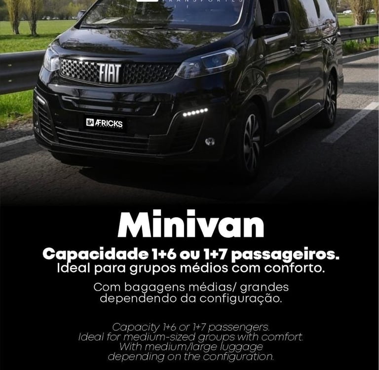 Traslados em minivan com espaço, conforto e segurança para grupos, eventos ou passeios.